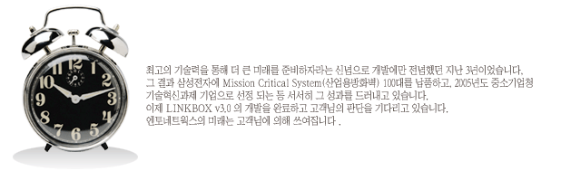 12. LINKBOX_RNCC °³¹ß¿Ï·á 11. LINKBOX_PROXY v3.0 Ãâ½Ã_ÀÏüÇü 10. LINKBOX_Wizard v3.0 °³¹ß¿Ï·á 9. ¼¿ï»ê¾÷´ëÇб³ ³×Æ®¿öÅ©Çаú¿Í »êÇÐÇù·Â ü°á 8. 2005³â Áß¼Ò±â¾÷û ±â¼úÇõ½Å°úÁ¦ ±â¾÷ ¼±Á¤ 7. °æ¹ÎÁ¤º¸»ê¾÷°íµîÇб³¿Ü 20°³ »çÀÌÆ® LINKBOX v3.0_¥â TEST 5. ¿£Åä³×Æ®¿÷½º¿¡¼ ¢ß¿£Åä³×Æ®¿÷½º·Î ¹ýÀÎ Àüȯ 3. Mission Critical System(»ê¾÷¿ë ¹æÈº®) ¢ß»ï¼ºÀüÀÚ 100EA °ø±Þ |