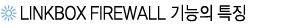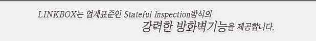 LINKBOXÀÇ FIREWALL ±â´ÉÀº ÆÐŶÀÇ Çì´õ¸¦ °Ë»çÇÏ´Â ÆÐŶ ÇÊÅ͸µ ¹æ½Ä°ú ´Þ¸® ¼¼¼Ç Çü¼º °úÁ¤ÀÇ À̺¥Æ®¸¦ ÃßÀûÇÏ¿© Á¤»óÀûÀÎ ÇÁ·Î¼¼½ºÀÇ À§¹Ý±îÁö °Ë»çÇÏ´Â ¾÷°è Ç¥ÁØÀÎ Stateful Inspection ¹æ½ÄÀÇ °­·ÂÇÑ ¹æÈ­º®ÀÔ´Ï´Ù.