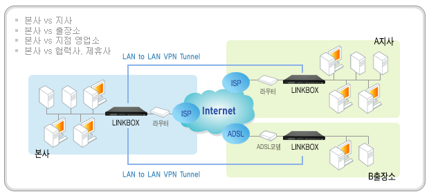 | LINKBOX¿Í LINKBOX¸¦ VPN ÅͳηΠ¿¬°áÇÏ´Â ¹æ½ÄÀÔ´Ï´Ù. | |