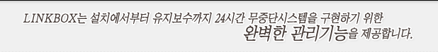 LINKBOX´Â ¼³Ä¡¿¡¼ ºÎÅÍ ¿î¿µ, À¯Áöº¸¼ö±îÁöÀÇ Àü°úÁ¤ÀÌ 24½Ã°£ ¹«Áß´Ü ¼ºñ½º°¡ °¡´ÉÇϵµ·Ï ¼³°èµÇ¾ú½À´Ï´Ù. |