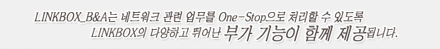 LNKBOX B&A ¼Ö·ç¼ÇÀº ´Ü¼øÈ÷ ȸ¼±¸¸ ´ëüÇϴµ¥ ±×Ä¡Áö ¾Ê°í 24½Ã°£ ¹«Áß´Ü ³×Æ®¿öÅ© ±¸ÇöÀ» À§ÇØ ÇÊ¿äÇÑ ¸ðµç ³×Æ®¿öÅ© °ü·Ã ¾÷¹«¸¦ One-Stop¿¡ ÇØ°áÇÒ ¼ö ÀÖµµ·Ï ÇÏ´Â ´Ù¾çÇÏ°í ¶Ù¾î³ ºÎ°¡±â´É°ú ¿Ïº®ÇÑ ¿ÜºÎ Áö¿øÃ¼Á¦¸¦ ÇÔ²² Á¦°øÇÕ´Ï´Ù. |