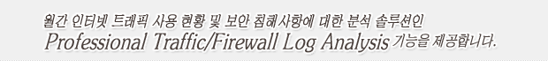 ¿ÜºÎÀÇ °ø°ÝÀ» Firewall °ú IPS ±â´ÉÀ» ÅëÇØ ¹æ¾îÇÑ °á°ú¿¡ ´ëÇØ ´Ü¼øÈ÷ Log Data ¸¦ List ÇüÅ·ΠÁ¦°øÇÏ´Â °ÍÀÌ ¾Æ´Ï¶ó °í¼ÓÀÇ µ¥ÀÌÅÍ ¼öÁý ¹× DBó¸® ±â¼úÀ» ÀÌ¿ë, Àü¹® ±â¹ýÀ¸·Î ºÐ¼®ÇÑ ¼ö¹é¿©Á¾ÀÇ ´Ù¾çÇÑ ÀڷḦ ½Ç½Ã°£À¸·Î Á¦°øÇÕ´Ï´Ù.