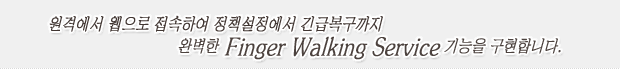 À¥À» ÅëÇØ ¸ðµç Á¤Ã¥¼³Á¤¿¡¼ ±ä±Þº¹±¸±îÁö °¡´ÉÇϵµ·Ï ¼³°èµÇ¾î, ½Ã½ºÅÛ ÀÌ»ó½Ã ÇöÀå Ã⵿¾øÀÌ ¿ø°Ý¿¡¼ ½Å¼ÓÇÑ °íÀ厱¸ ¹× ±ä±Þº¹±¸°¡ °¡´ÉÇÑ ¿Ïº®ÇÑ Finger Walking Service¸¦ ±¸ÇöÇÕ´Ï´Ù.