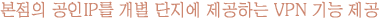 ÁöÁ¡¿¡¼ ÇÊ¿äÇÑ °øÀÎ IP´Â º»¡¤ÁöÁ¡ °£ VPN ±¸¼ºÀ» ÅëÇØ ¿¬°è°¡ °¡´ÉÇϹǷÎ